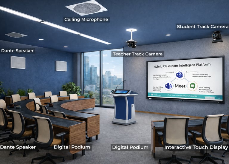 Video walls, conference systems, smart classroom and digital displays designed for clarity.
